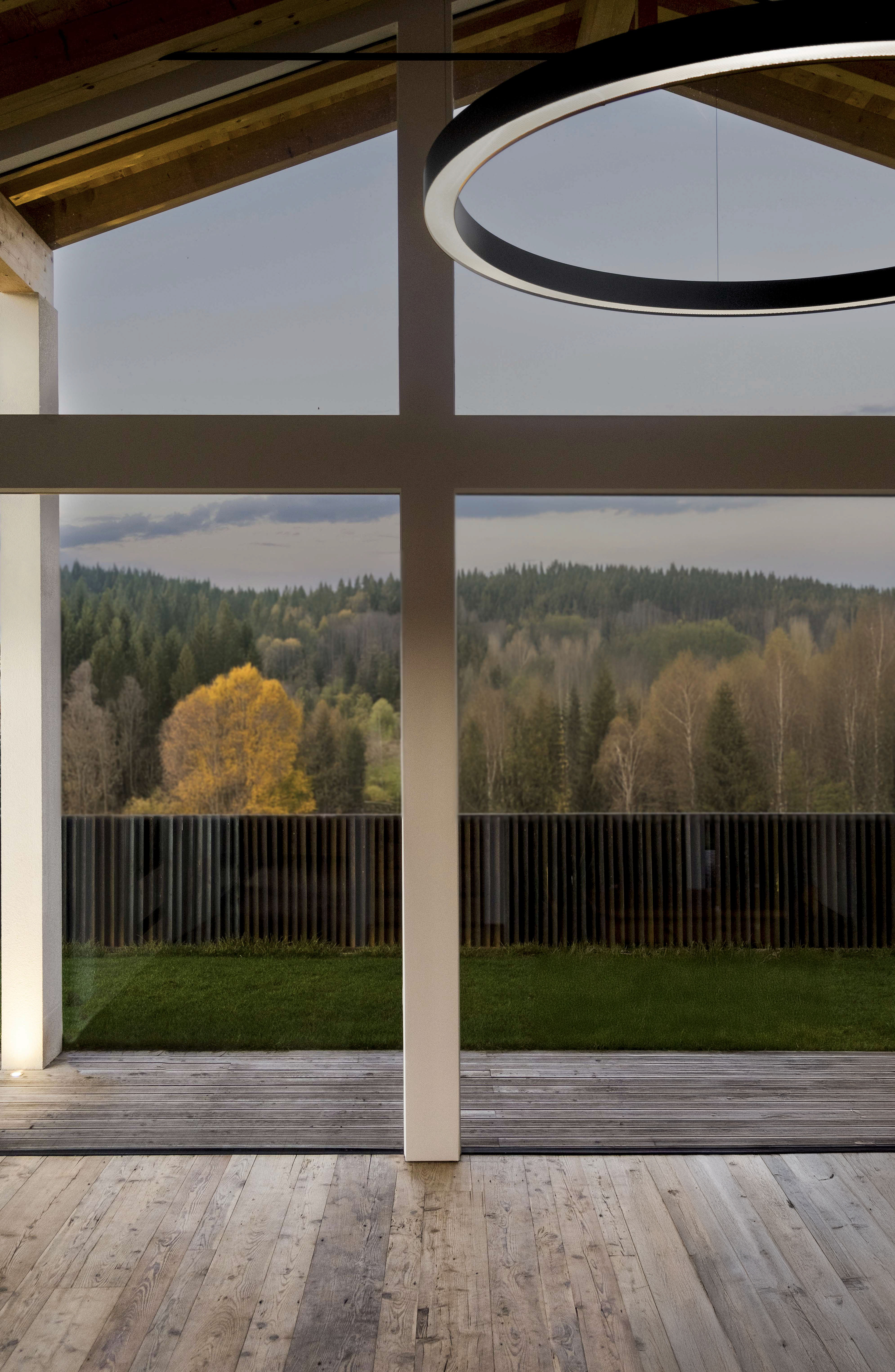 Abbiamo collaborato al progetto con i nostri serramenti. A partire dall’ampia vetrata, che contraddistingue l’edificio e lascia entrare il panorama. A completarla, un serramento alzante scorrevole di 330 cm, per amplificare la continuità visiva tra interno ed esterno.