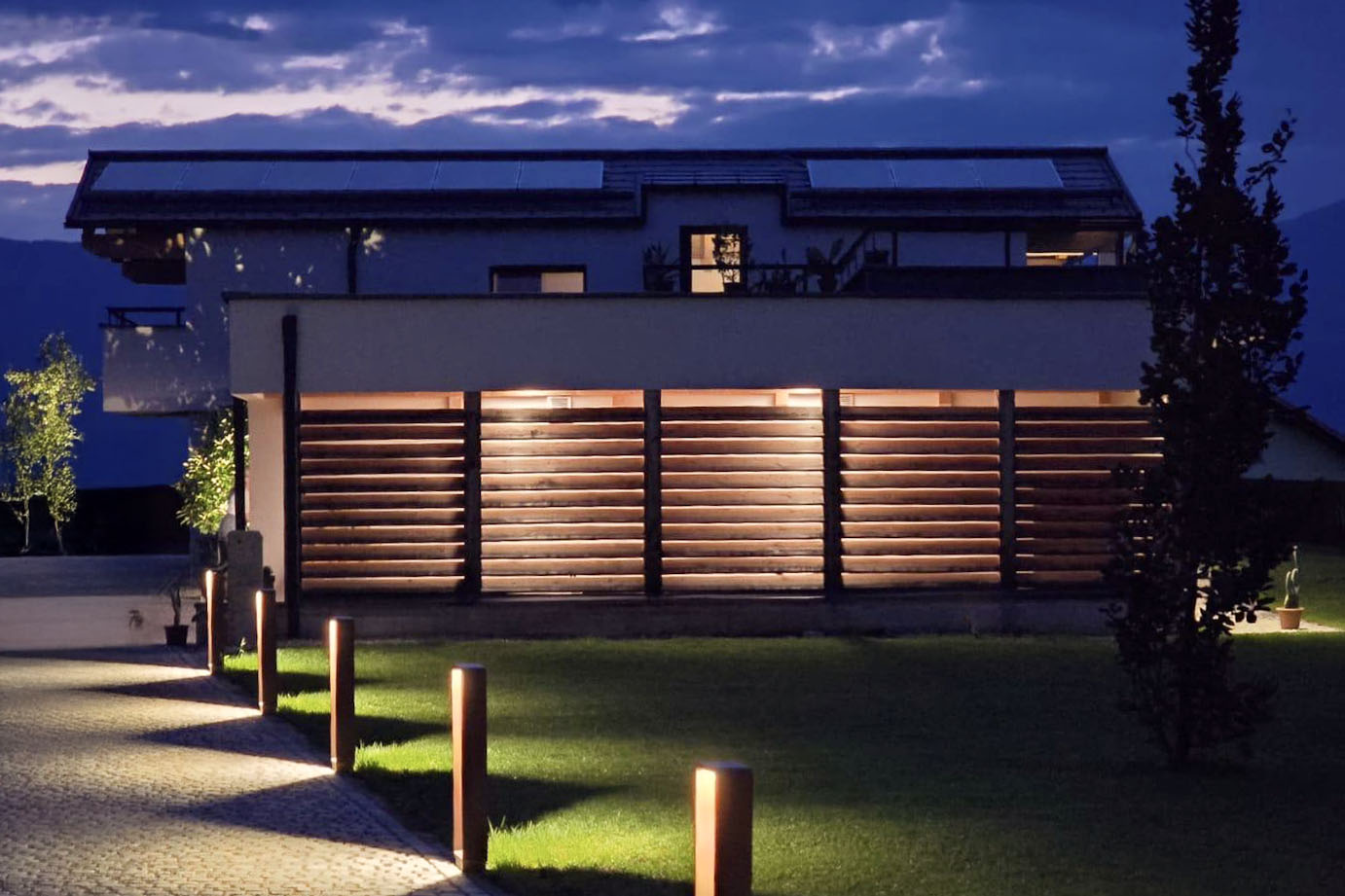 Per garantire prestazioni energetiche eccellenti, abbiamo scelto il nostro serramento Thermo 92 plus. Un sistema di frangisole esterni assicura ombreggiamento e privacy.